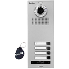 پنل چهار واحدی دکمه ای کارتی آیفون تصویری کالیوز مدل نفیس تگدار سوییچردار ،دارای دکمه های فشاری روبروی هم بوده و قابلیت باز کردن درب از طریق تگ یا کارت را دارد و همچنین دارای دوربین هوشمند رنگی با کیفیت بالا میباشد .